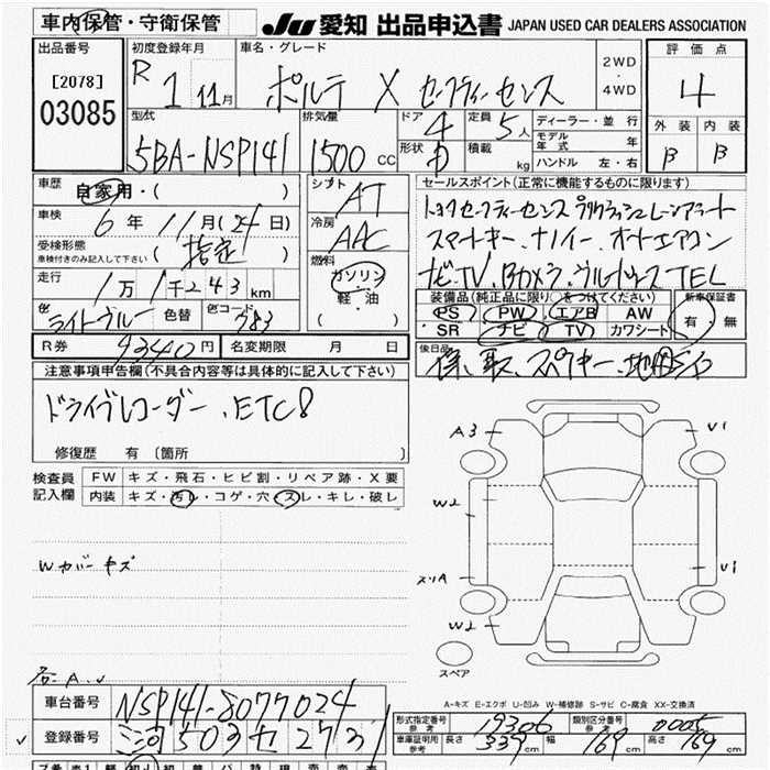 TOYOTA PORTE - лот 3085