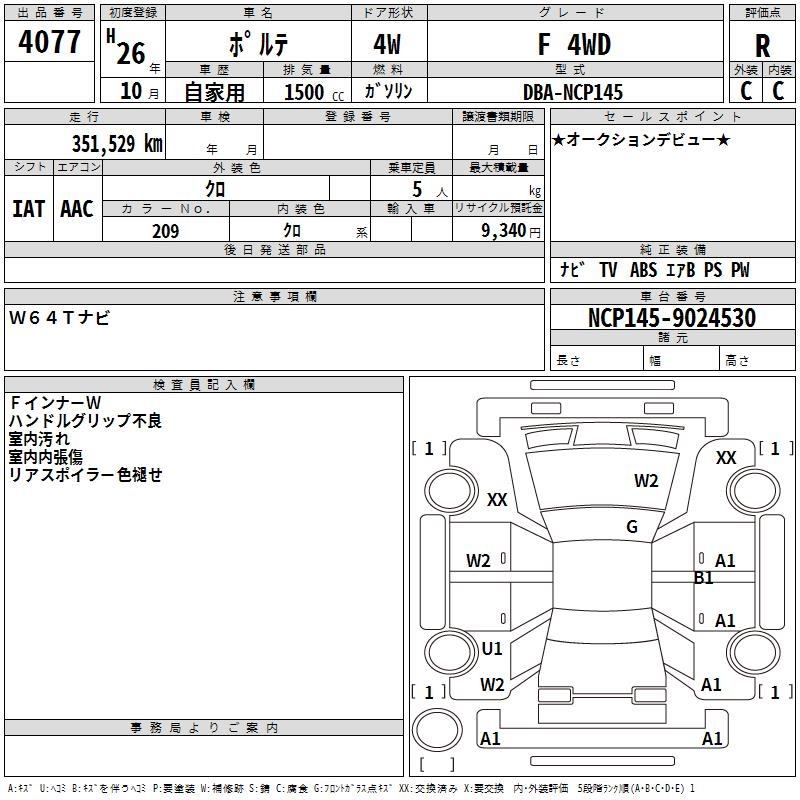 TOYOTA PORTE - лот 4077