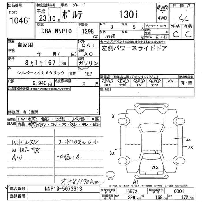 TOYOTA PORTE - лот 1046