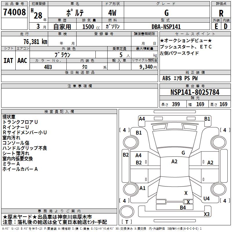 TOYOTA PORTE - лот 74008