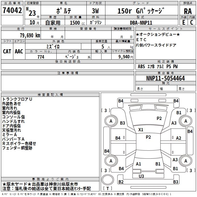 TOYOTA PORTE - лот 74042