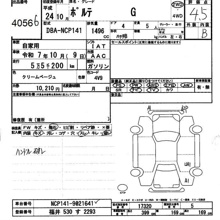 TOYOTA PORTE - лот 4056