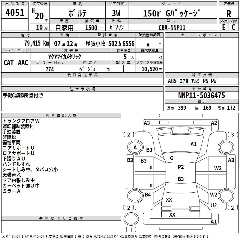 TOYOTA PORTE - лот 4051