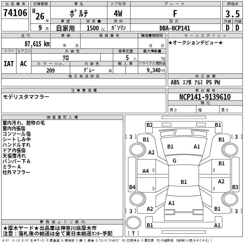 TOYOTA PORTE - лот 74106