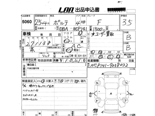 TOYOTA PORTE - лот 5060