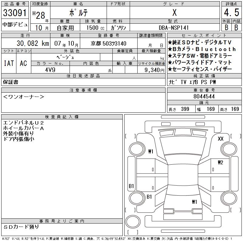 TOYOTA PORTE - лот 33091