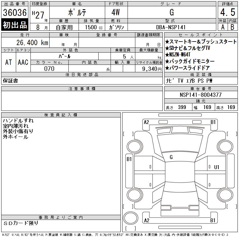 TOYOTA PORTE - лот 36036