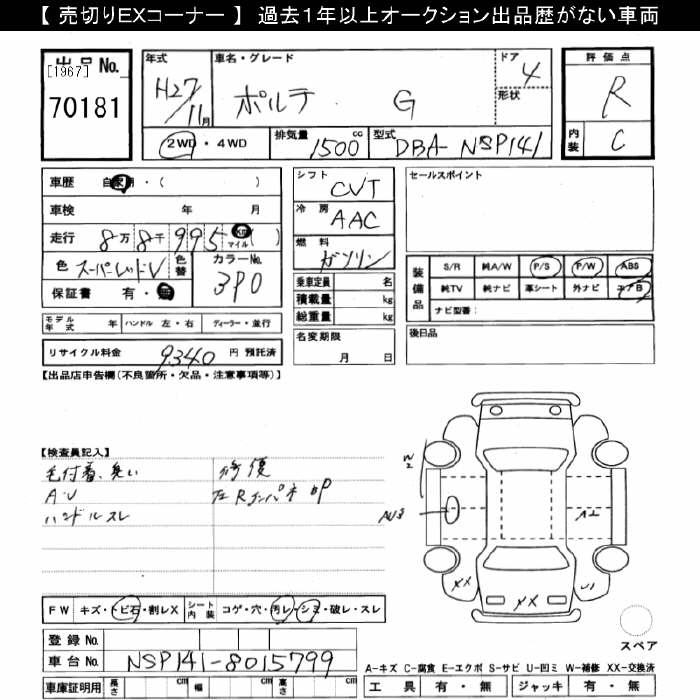 TOYOTA PORTE - лот 70181