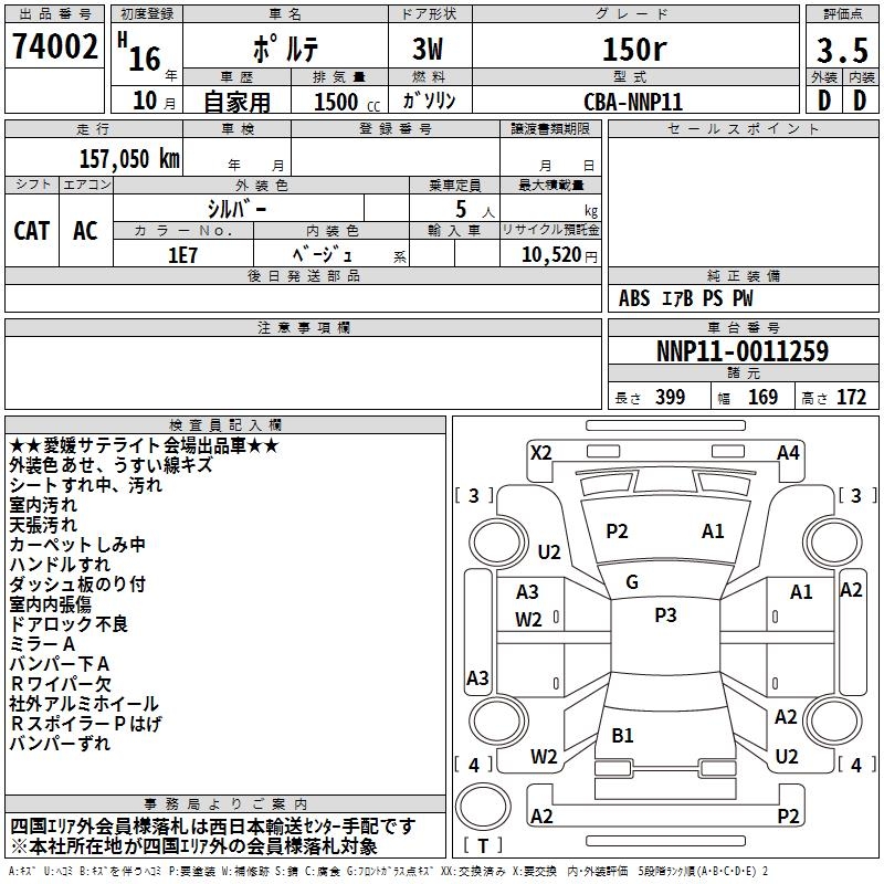 TOYOTA PORTE - лот 74002