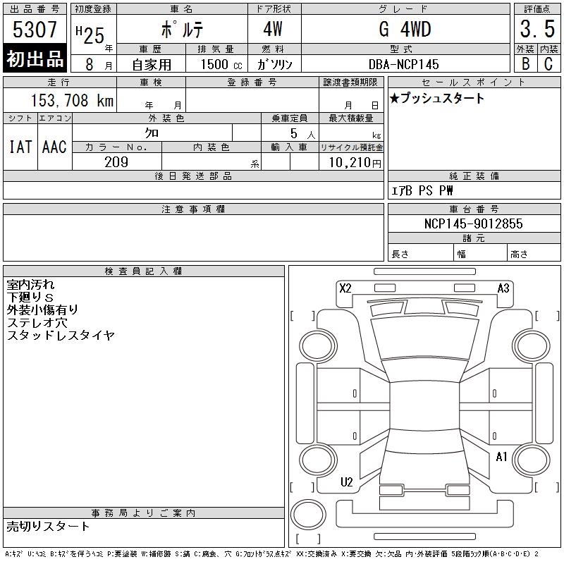 TOYOTA PORTE - лот 5307