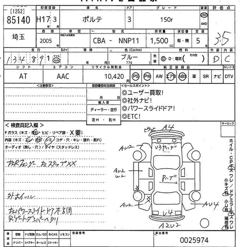 TOYOTA PORTE - лот 85140