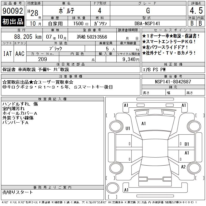 TOYOTA PORTE - лот 90092