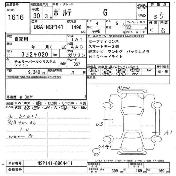 TOYOTA PORTE - лот 1616