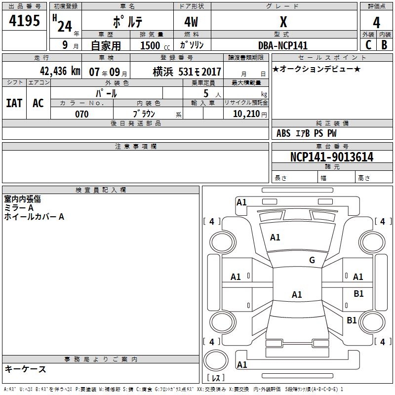 TOYOTA PORTE - лот 4195