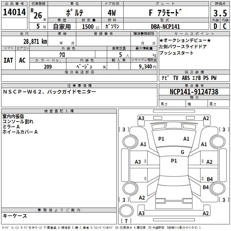 TOYOTA PORTE - лот 14014