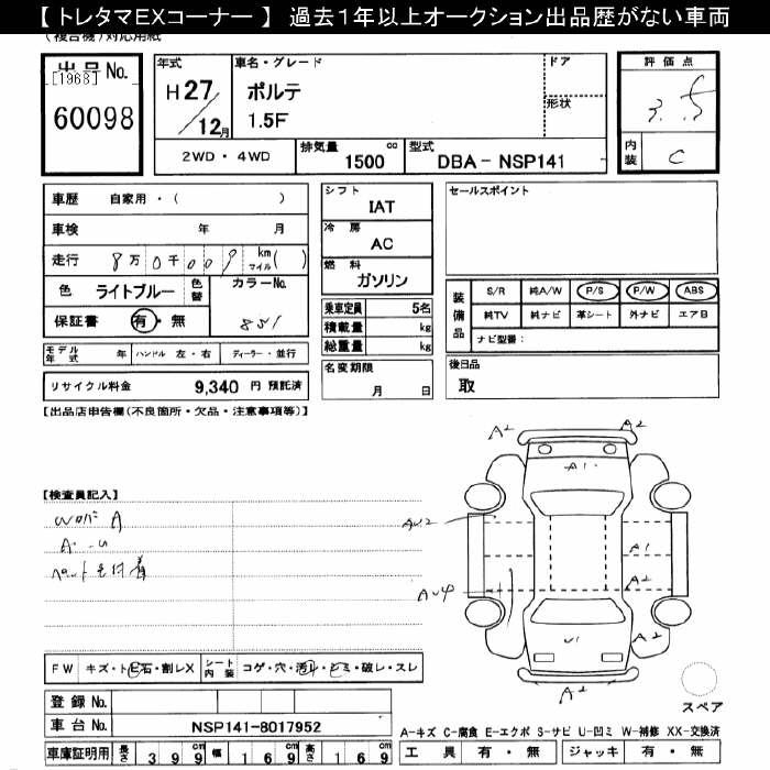 TOYOTA PORTE - лот 60098