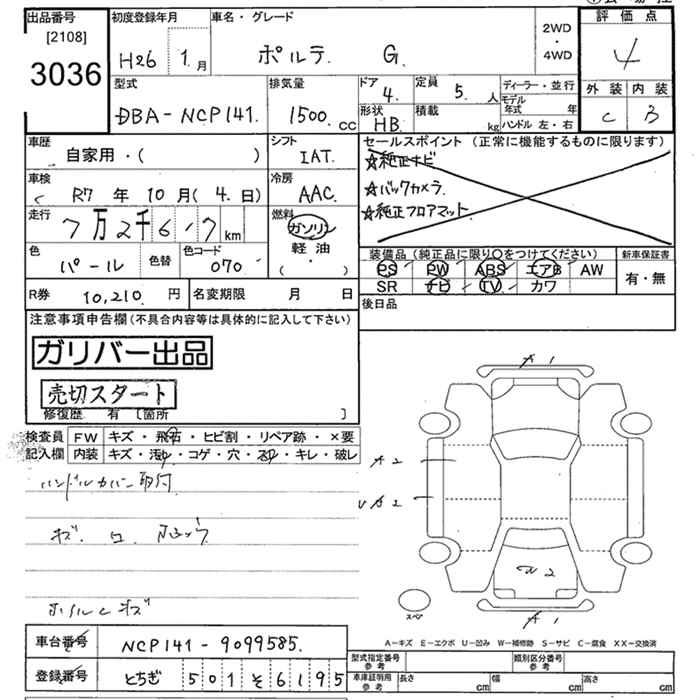 TOYOTA PORTE - лот 3036