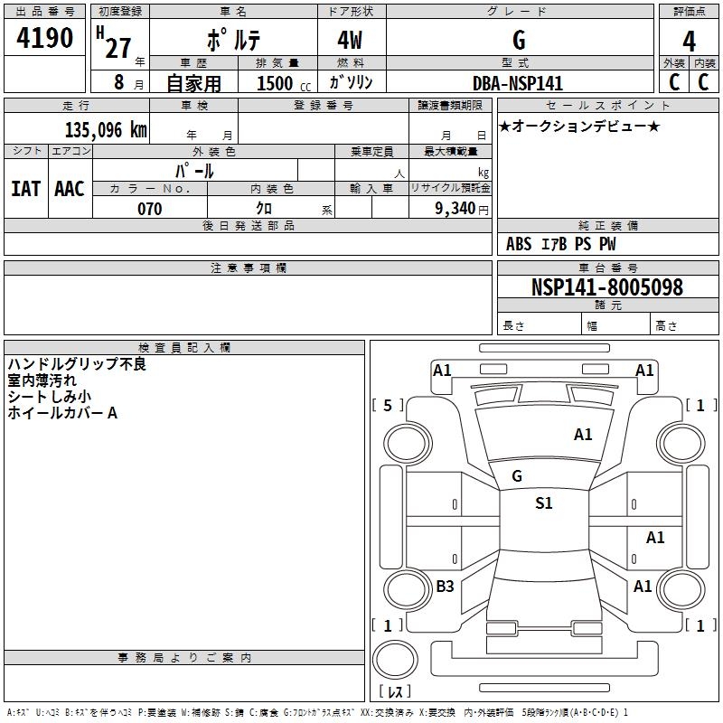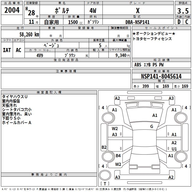 TOYOTA PORTE - лот 2004