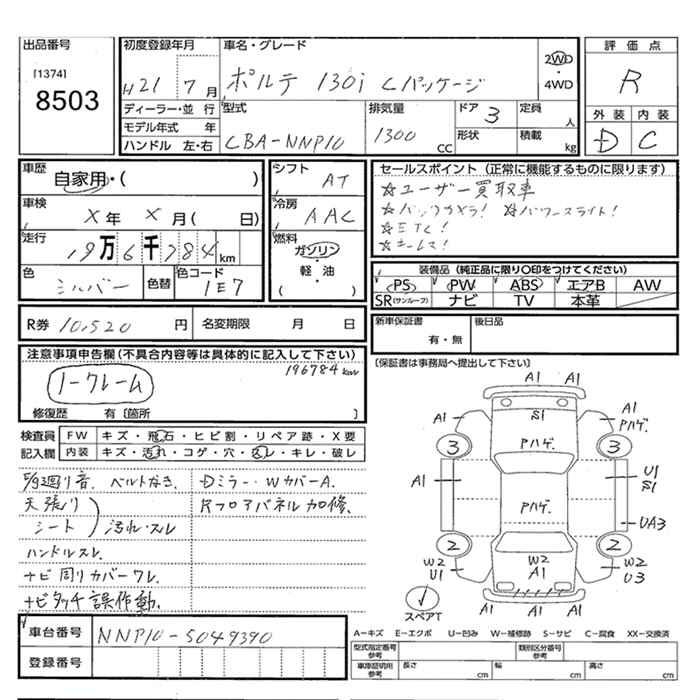 TOYOTA PORTE - лот 8503