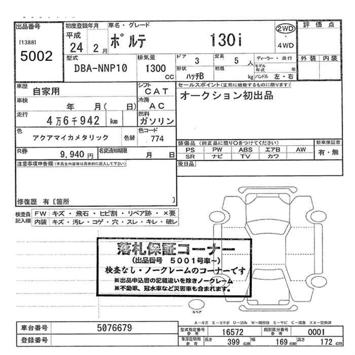 TOYOTA PORTE - лот 5002