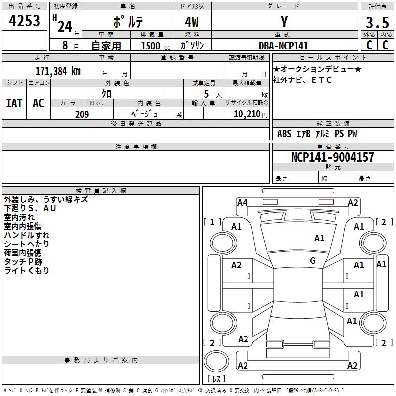 TOYOTA PORTE - лот 4253