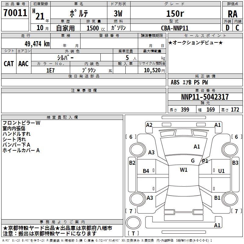 TOYOTA PORTE - лот 70011