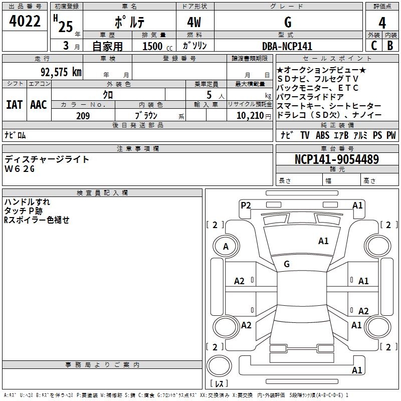 TOYOTA PORTE - лот 4022