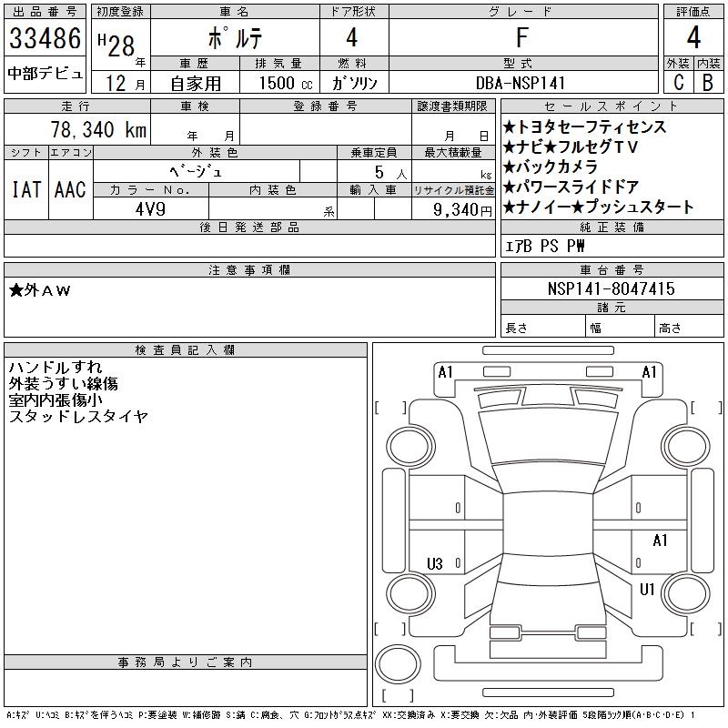 TOYOTA PORTE - лот 33486