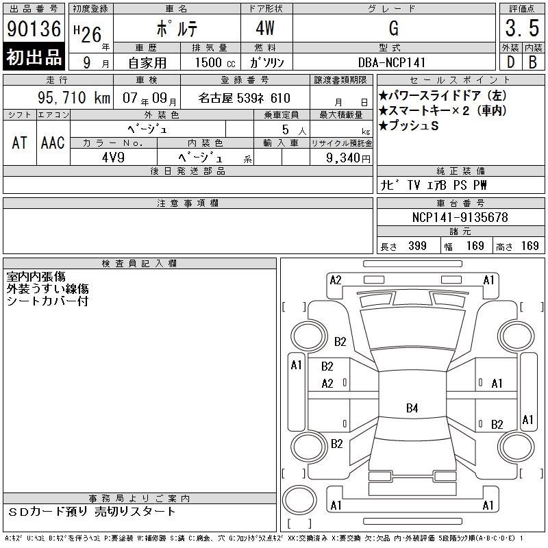 TOYOTA PORTE - лот 90136