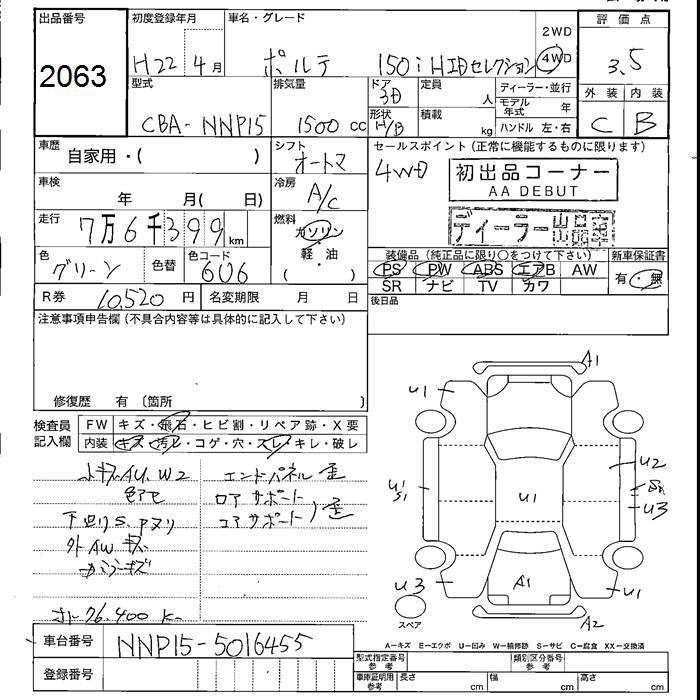 TOYOTA PORTE - лот 2063