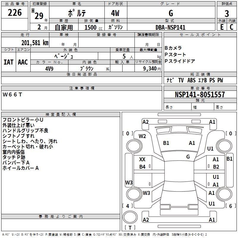 TOYOTA PORTE - лот 226
