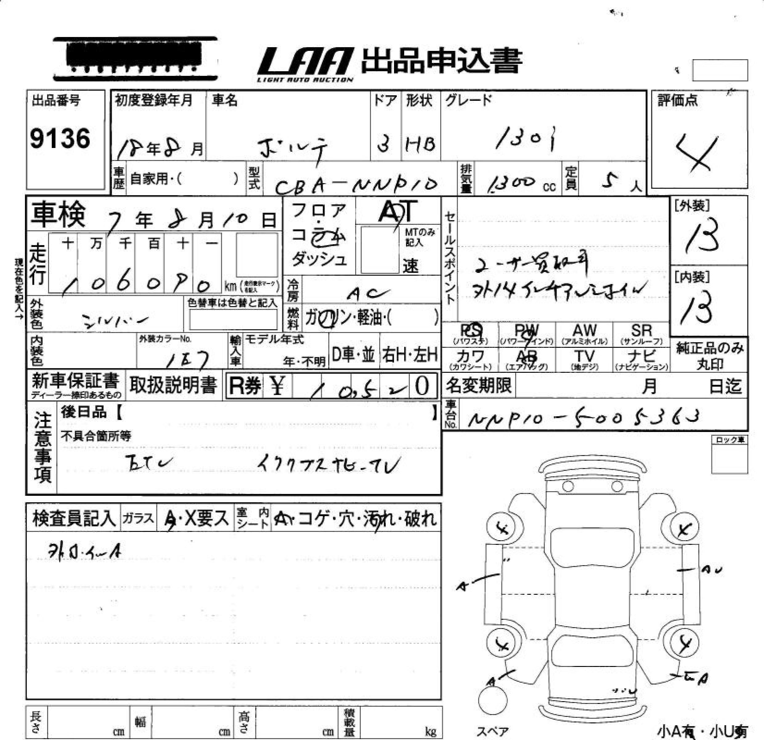 TOYOTA PORTE - лот 9136