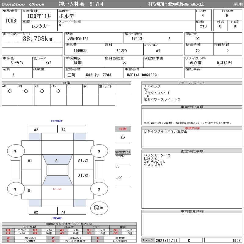 TOYOTA PORTE - лот 1006