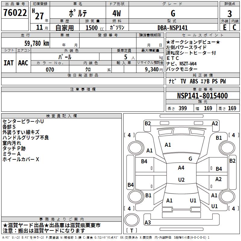 TOYOTA PORTE - лот 76022