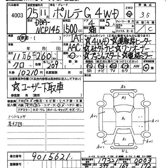 TOYOTA PORTE - лот 4003