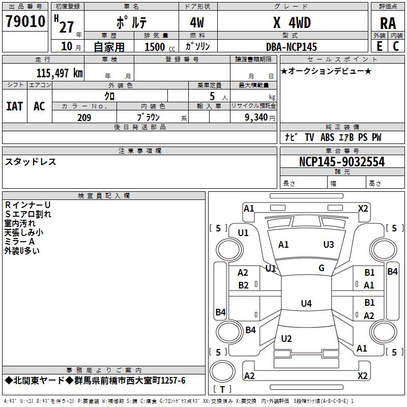 TOYOTA PORTE - лот 79010