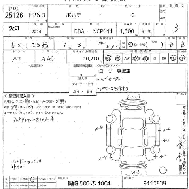 TOYOTA PORTE - лот 25126