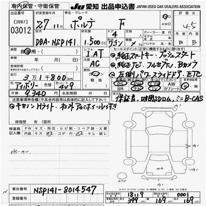 TOYOTA PORTE - лот 3012