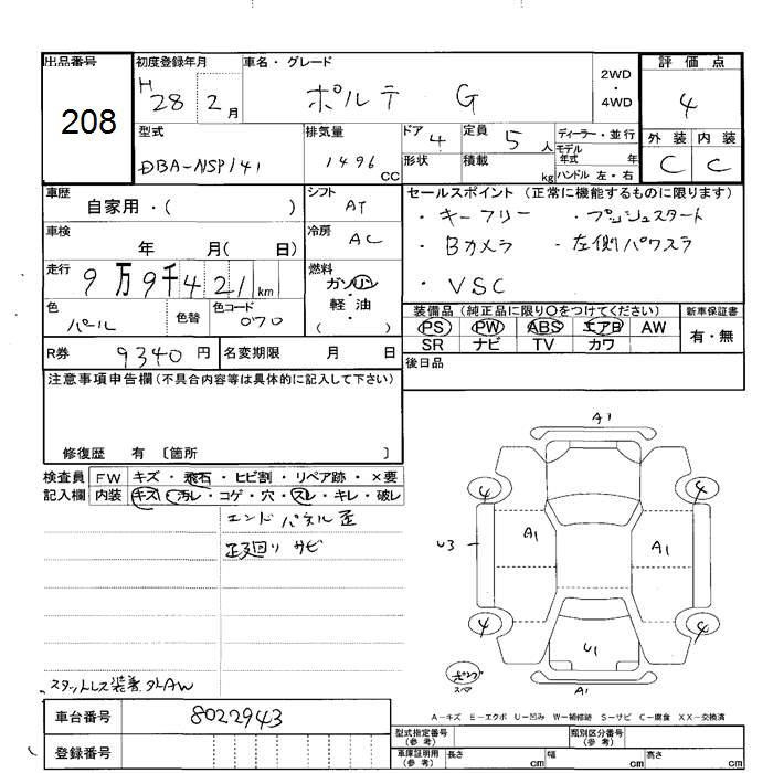 TOYOTA PORTE - лот 208