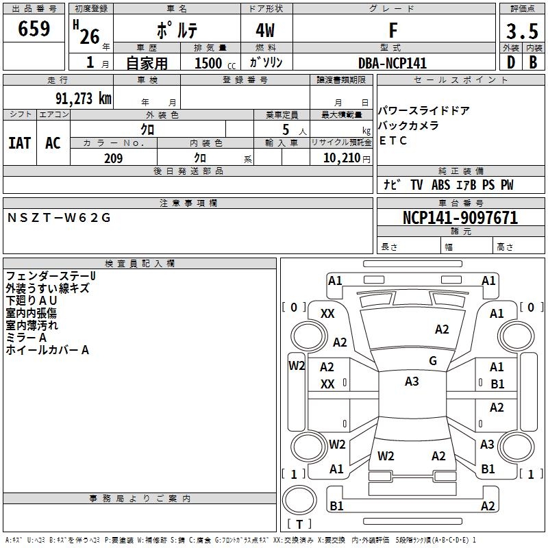 TOYOTA PORTE - лот 659