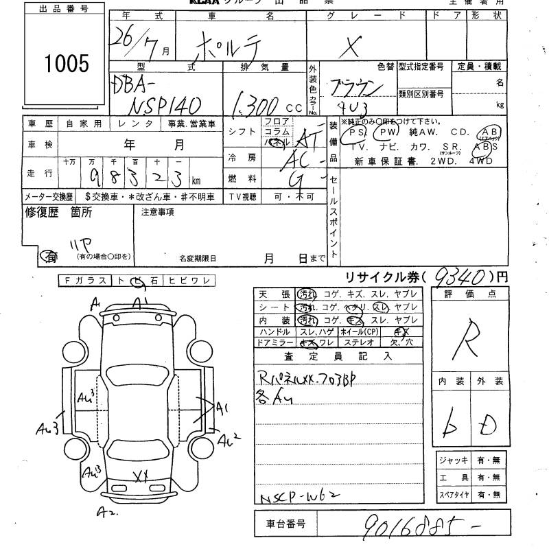 TOYOTA PORTE - лот 1005