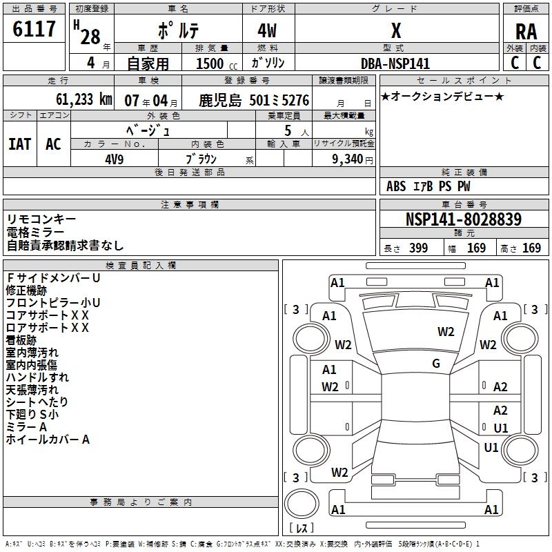 TOYOTA PORTE - лот 6117