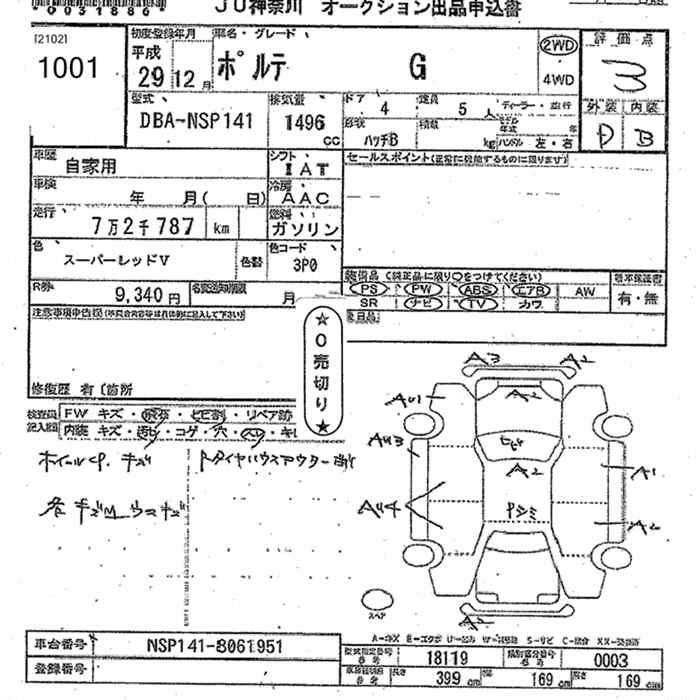 TOYOTA PORTE - лот 1001
