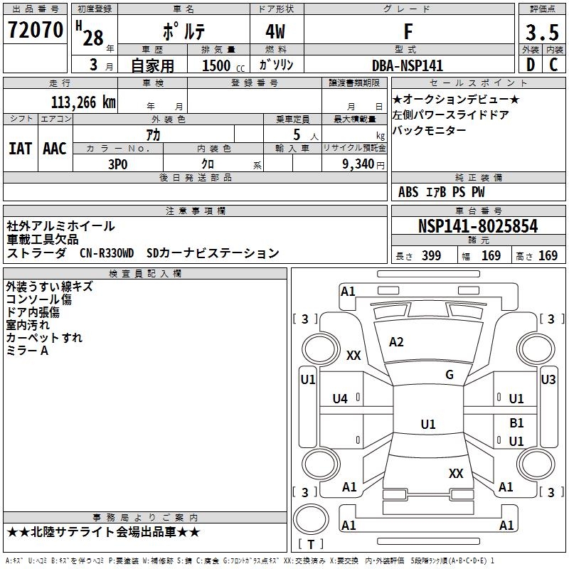 TOYOTA PORTE - лот 72070