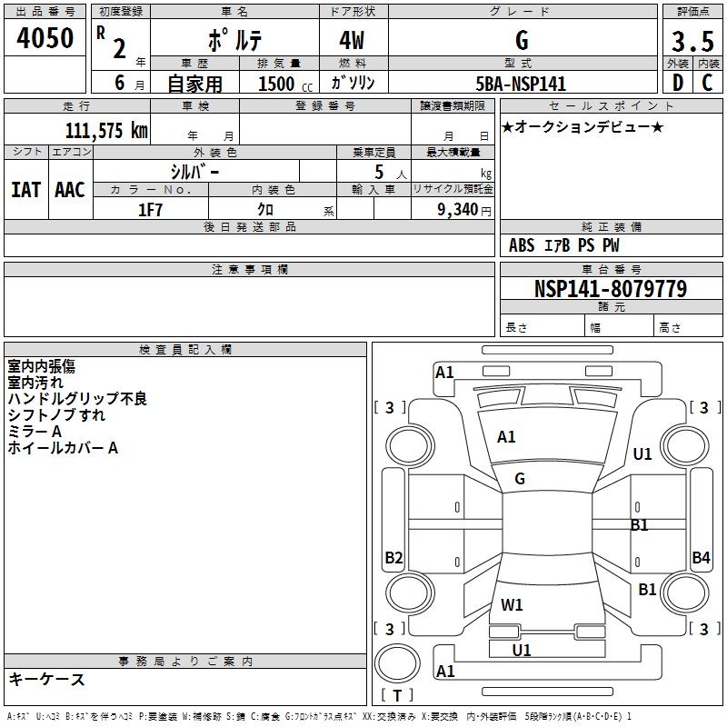 TOYOTA PORTE - лот 4050