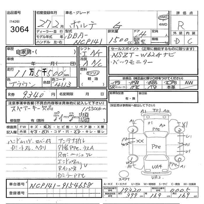 TOYOTA PORTE - лот 3064