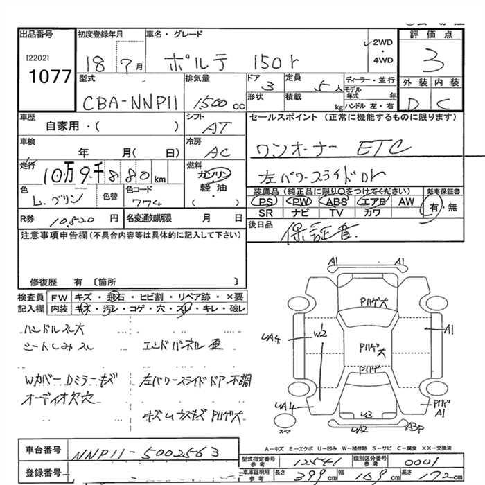 TOYOTA PORTE - лот 1077