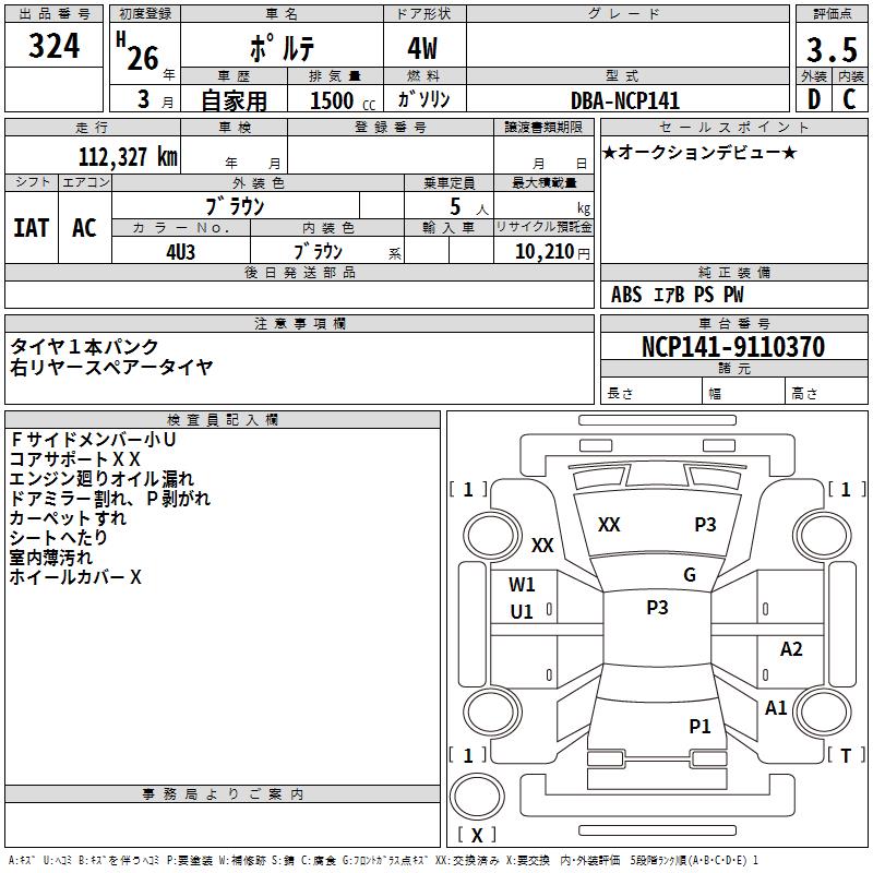 TOYOTA PORTE - лот 324