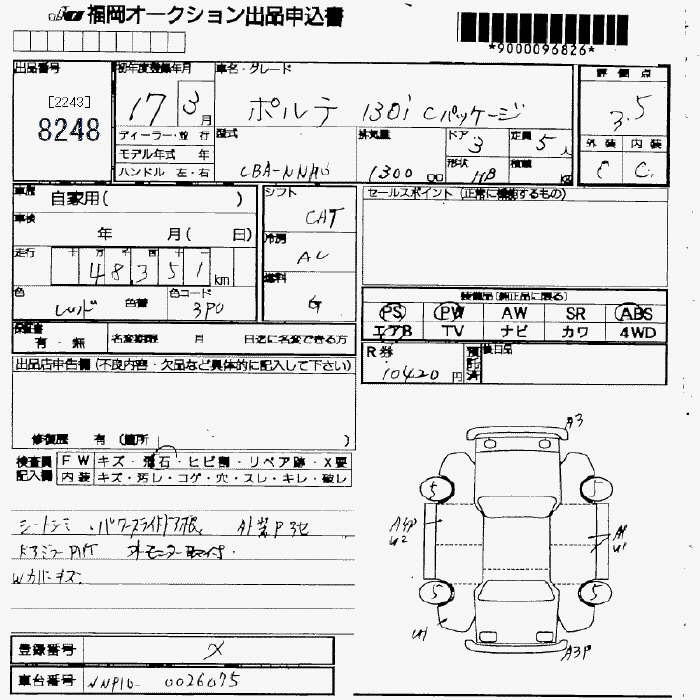 TOYOTA PORTE - лот 8248