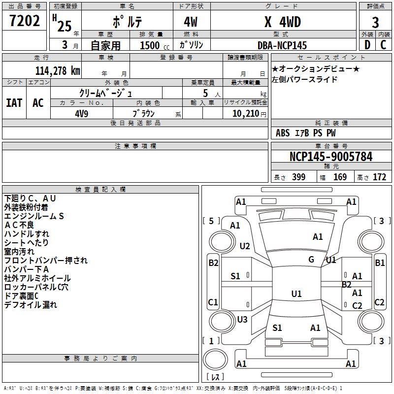 TOYOTA PORTE - лот 7202